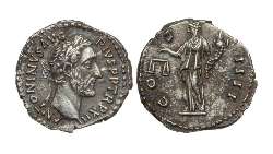 Denario con testa di Antonino Pio / Personificazione della Giustizia