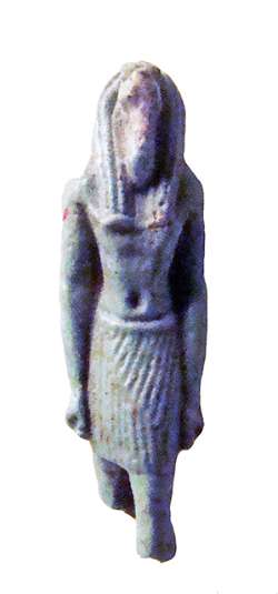 Amuleto in faience raffigurante Horo con pilastro dorsale forato, dall'Egitto