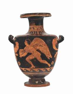 Hydria campana a figure rosse. Lato A: erote in marcia che regge patera piena di offerte
