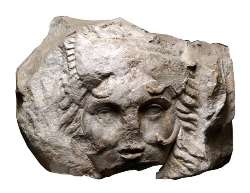 Rilievo con testa di Giove Ammone in calcare da Trieste San Giusto