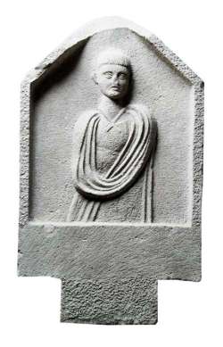 stele con figura togata e cornice pannonica in calcare da Trieste piazza Hortis
