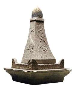 Cuspide piramidale con delfini e cimasa in calcare da Trieste via Udine