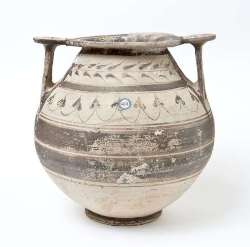 Olla con anse a scalpello e rotella in ceramica messapica con coperchio