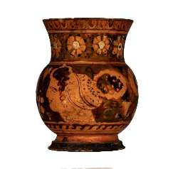 Boccale apulo a figure rosse con testa femminile.