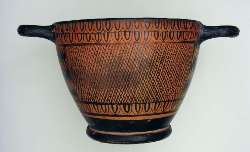 Skyphos attico con motivo a reticolato nero e ovuletti