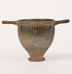 Skyphos a vernice nera sovrraddipinta con testa femminile