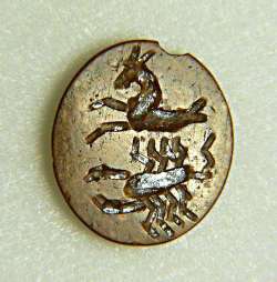 Gemma con capricorno e scorpione, in diaspro giallo; Sul registro superiore, capricorno volto a sinistra; sul registro inferiore, scorpione visto dall'alto, volto a sinistra, con otto zampe.