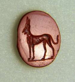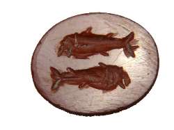 Gemma romana con due pesci, in diaspro rosso; Due pesci di specie diversa, messi su due registri, uno volto a destra, l'altro a sinistra.