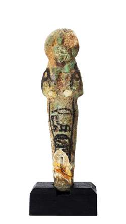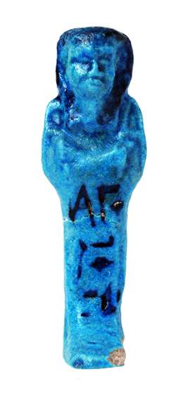 Ushabti in faience con iscrizione illeggibile, dall'Egitto