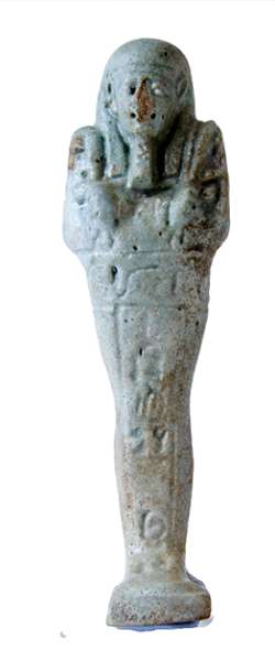 Ushabti in faience con iscrizione illeggibile, dall'Egitto