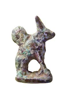 Amuleto a forma di gatto con anello sul dorso, dall'Egitto