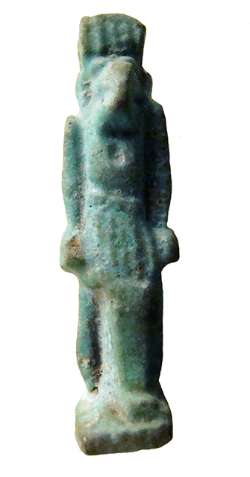 Amuleto a forma di falco Horo con corona forata, dall'Egitto