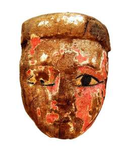 Maschera pertinente a un sarcofago in legno dipinto, dall'Egitto