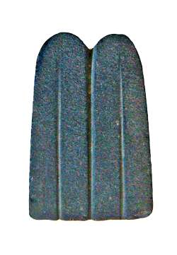Amuleto con una doppia piuma incisa su un lato, privo del foro, dall'Egitto