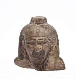 Testa di statuina di divinità femminile in steatite, dall'Egitto