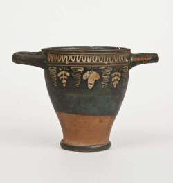 Skyphos a vernice nera sovrraddipinta con testa femminile