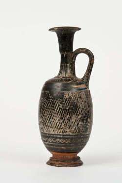 Lekythos a corpo ovoidale a vernice nera sovraddipinta