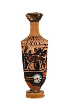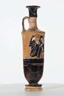 Lekythos attica a figure nere con decorazione a meandro