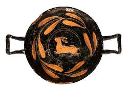 Kylix apulo a figure rosse sovraddipinto con lepre in corsa