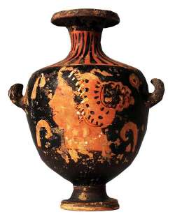 Hydria apula a figure rosse con palmetta