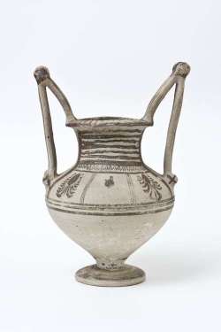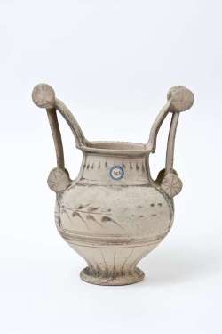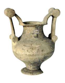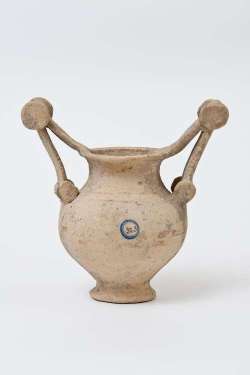 Olla con anse a scalpello e rotella in ceramica messapica