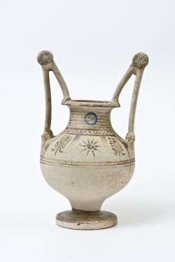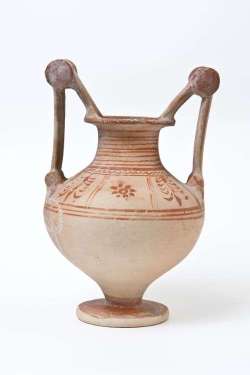 Trozzella in ceramica messapica con motivo vegetale e anfora