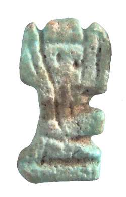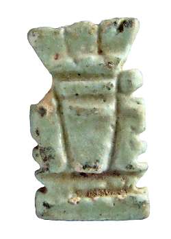 Amuleto raffigurante il pilastro djed con corona atef in faience, in composizione, dall'Egitto