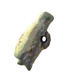 Amuleto raffigurante Pateco con presa forata dietro la schiena, dall'Egitto