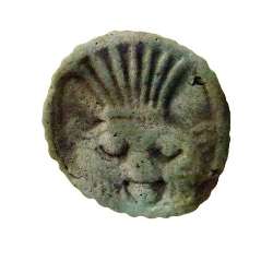 Piastrina in faience con foro passante raffigurante Bes, dall'Egitto