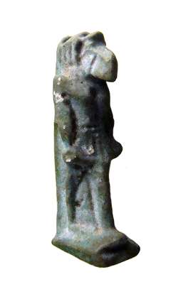 Amuleto raffigurante Thot con pilastro dorsale forato e spezzato, dall'Egitto