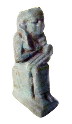 amuleto in faience raffigurante Sekhmet seduta, dall'Egitto