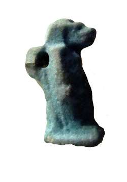 Amuleto a forma di babbuino Thot seduto a terra, foro tra collo e zampe, dall'Egitto