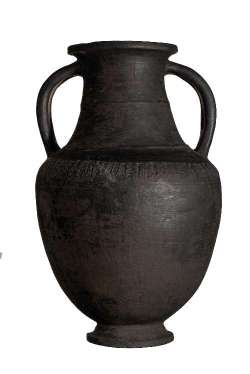 Anfora conica in ceramica a vernice nera sovraddipinta