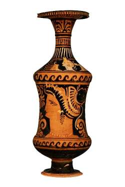 Anfora panatenaica apula a figure rosse. Lato A eB: testa femminile.