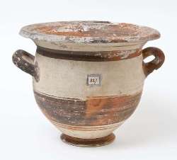 Cratere a campana con maschera a vernice nera sovraddipinta