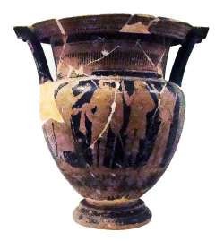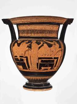 Cratere a colonnette attico a figure rosse con scena di simposio
