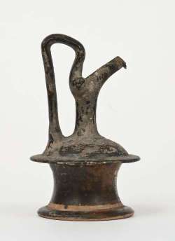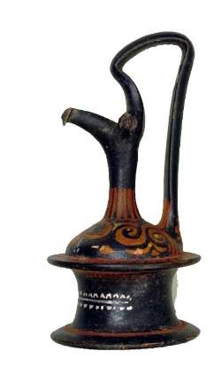 Epichysis apulo in terracotta a figure rosse da Rudiae. Lato A: testa femminile con stephanè