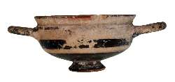 Kylix skyphoide apulo a figure rosse. Lato A e B: testa femminile.