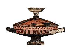 Coperchio di lekanis apula a figure rosse con palmette.