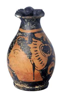 Olpe oinochoe V B (Beazley) a vernice nera sovraddipinta