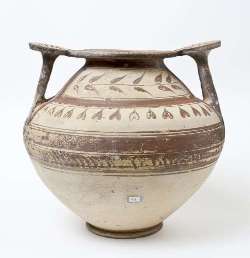 Olla con anse a scalpello e rotella in ceramica messapica
