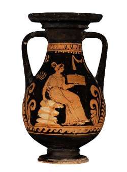 Pelike attica a figure rosse. Lato A: donna. Lato B: giovane in corsa