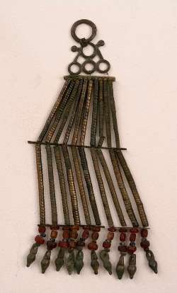 Pendaglio composito in bronzo con vaghi d'ambra e vetro dal Tesoretto di San Canziano