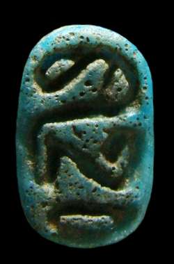 Scaraboide in faience con segni geroglifici, dall'Egitto