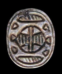 Scaraboide in steatite con motivi geometrici, dall'Egitto