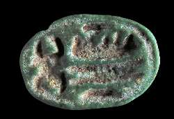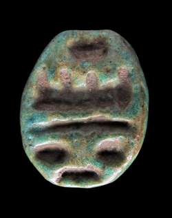 Scaraboide in faience con segni geroglifici, dall'Egitto