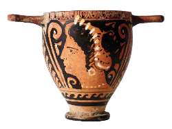 Skyphos apulo a figure rosse. Lato A e B: testa femminile.