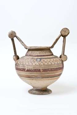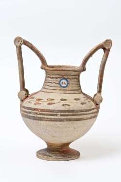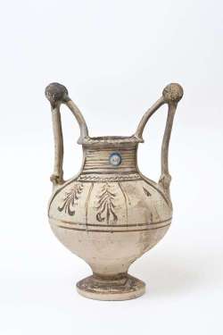Trozzella in ceramica messapica con motivo vegetale e anfora
