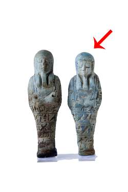 Parte superiore di ushabti femminile in faience, dall'Egitto, incollato a inv. 30939