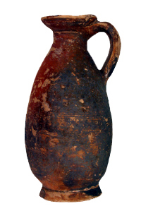 Olpe miniaturistica piriforme con ansa sopraelevata